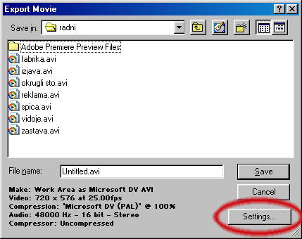 Tip datoteke: DV AVI (25 Mbit/s)