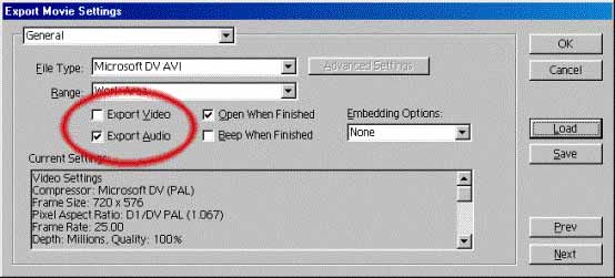 Vratiti nazad opciju "General" iz ponudjenog Drop down menija pa odvojeno exportovati samo video...